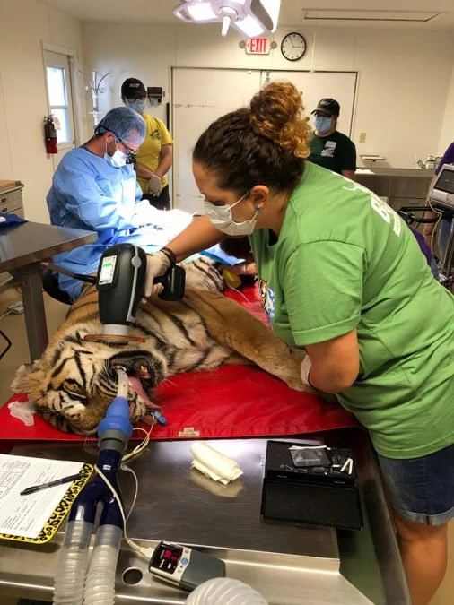 Aria Tiger having wounds repaired and getting dental X-rays